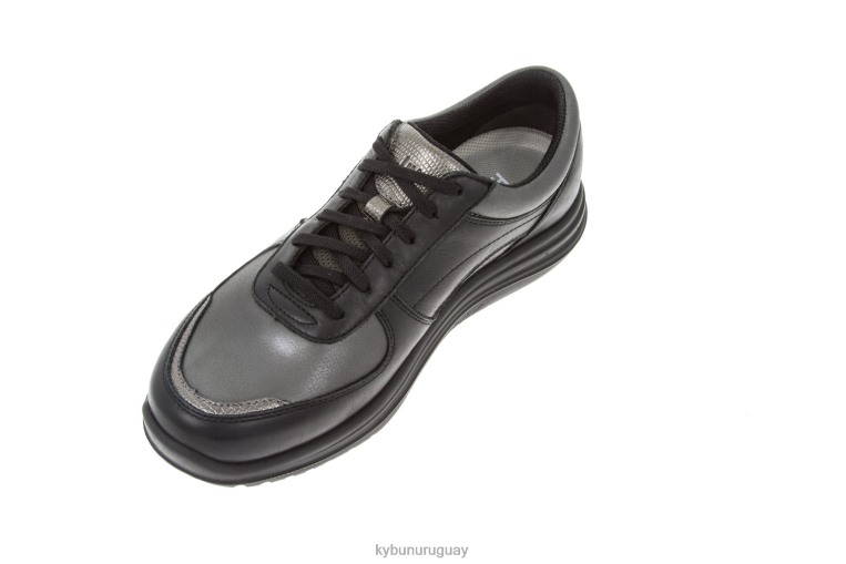 el vernier negro se distingue por su elegancia deportiva. Este zapato íntegramente de piel se presenta en el clásico negro con elegantes inserciones en zonas acentuadas. el plateado se repite en los ojales y en el emblema de kybun. Estos detalles, en combinación con la suela Cirrus, confieren al nonio negro un cierto aire deportivo.
